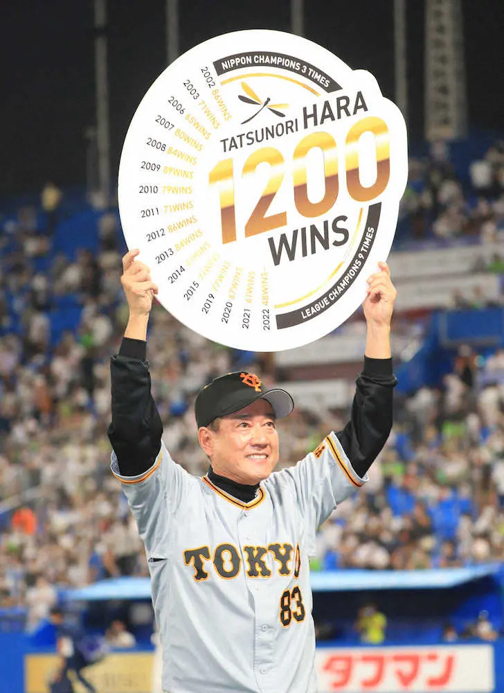 巨人の原監督が監督通算1200勝を達成した。3―2の9回2死一塁、平凡な飛球を中堅手の増田大がまさかの落球。クロールが続く中村を三ゴロに仕留め、何とか逃げ切った。