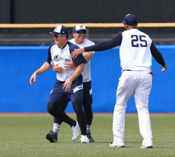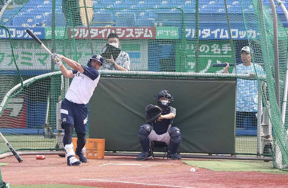 午後2時20分、選手の最後にクラブハウスを出てグラウンド入り。フリー打撃の際は高津監督と言葉を交わすシーンも。フリー打撃では22スイングで4本の柵越えを見せた。