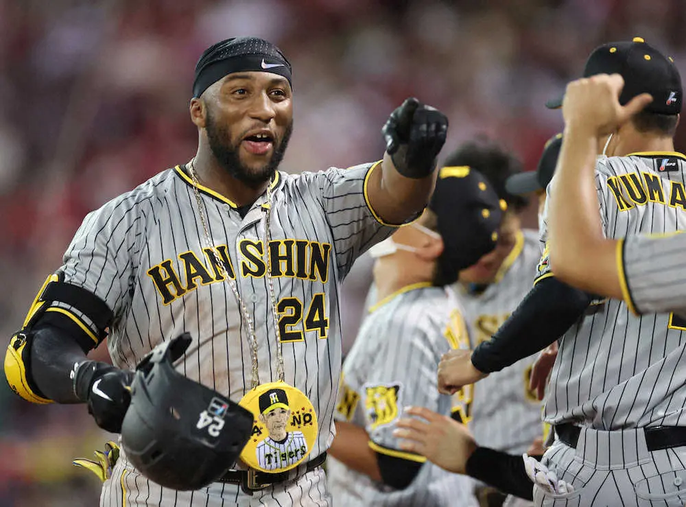 先発のガンケルが4回10安打5失点で降板も、2―5の5回にロドリゲスの2ランとロハスのソロで同点に。そのまま迎えた8回に島田のこの日2本目の適時打となる中堅への決勝打と、佐藤輝の中堅への犠飛で2点を勝ち越した。