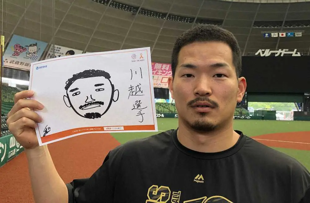 西武・山川が描いた自身の似顔絵を持つ川越 Photo by 提供写真 親子でお絵かきしよう!西武が「推し獅子」似顔絵募集 山川、山田も川越… ギャラリーで見る この記事のフォト 2022年08月09日の画像一覧 もっと見る 2022年08月09日の画像をもっと見る