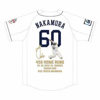 西武・中村の450本塁打達成記念刺しゅう入りレプリカユニフォーム(球団提供) Photo by 提供写真 西武・おかわり 史上14人目通算450本塁打記念グッズ販売 記念ユニやTシ… ギャラリーで見る この記事のフォト 2022年08月12日の画像一覧 もっと見る 2022年08月12日の画像をもっと見る