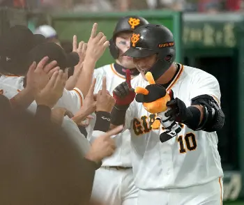 巨人・中田 3試合連続4番で4試合連続打点 試合前にはサザエさん一家と記念撮影
