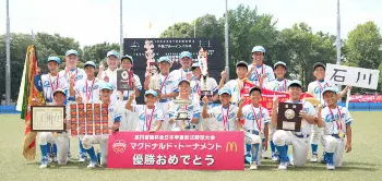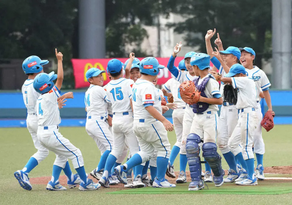 5回には自ら適時三塁打。稲場健留(6年)の打席では、打者とのアイコンタクトでヒットエンドランを仕掛け、高いバウンドのゴロで三塁から生還した。「打者を信じて走りました」と服部。倉知幸生監督は「練習でもやっている形。サインではありません。子供たちの判断というか呼吸です」と明かした。互いの信頼が結実し、連覇を狙う強豪を下して頂点へ。倉知監督は「1勝できればいいねと話していたのに。信じられない。子供たちが大会を通じて成長していった」と称えた。(後藤 茂樹)