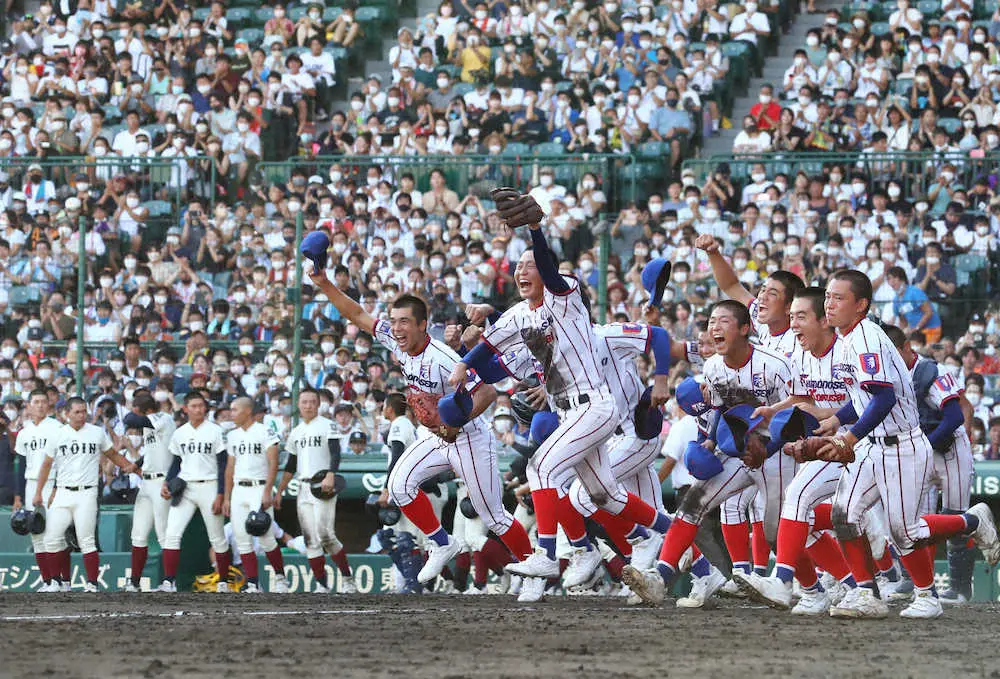 <大阪桐蔭・下関国際>9回1死二、三塁、下関国際・賀谷は逆転の中前2点適時打を放ちガッツポーズ(撮影・後藤 大輝) Photo by スポニチ 下関国際、大阪桐蔭を破り初4強!7回三重殺で流れつかみ9回に賀谷が決勝2… ギャラリーで見る この記事のフォト 2022年08月19日の画像一覧 もっと見る 2022年08月19日の画像をもっと見る