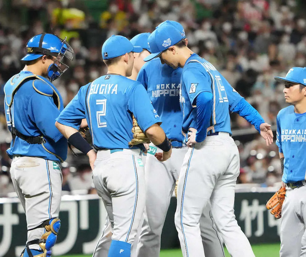 <ソ・日>ベンチで厳しい表情のBIGBOSS(左端)(撮影・岡田 丈靖) Photo by スポニチ 新庄日本ハム 5連敗でワースト更新の借金21 上沢も今季ワースト8失点で6… ギャラリーで見る この記事のフォト 2022年08月20日の画像一覧 もっと見る 2022年08月20日の画像をもっと見る