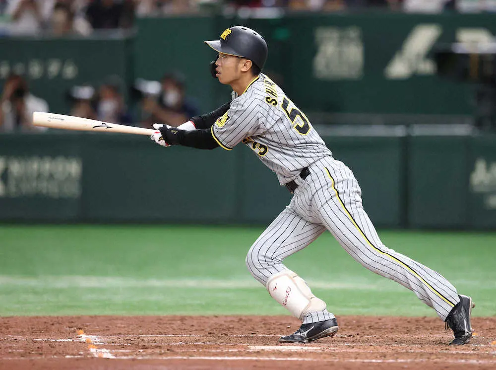 阪神の2番・島田が貴重な“中押し点”を叩き出した。追加点が欲しい2―0の4回2死一、二塁、シューメーカーから中前適時打を放った。2球目に空振りしていたスライダーを、体勢を崩しながらも巧みなバットコントロールで打ち返した。