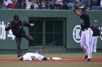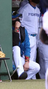 <日・オ>5回、杉谷の走塁死に苦笑いの新庄監督(撮影・高橋茂夫)