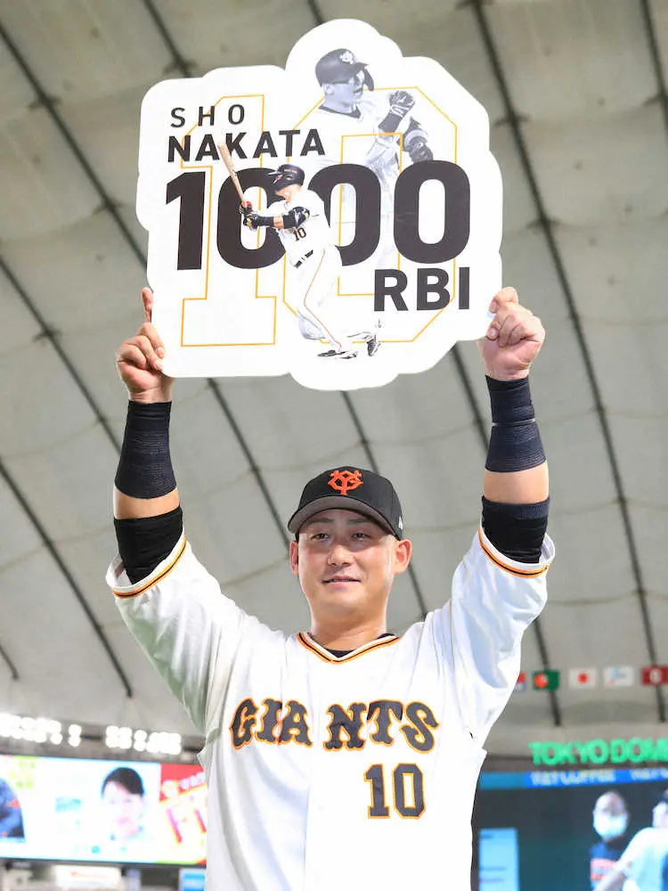 平成初となる偉業は5回の第3打席に生まれた。2死一、二塁から打席に立った中田は相手先発・勝野の2球目143キロ外角ストレートを左前に放ち二走・吉川が余裕の生還。第91代4番の通算1000打点到達に東京Dは大きな拍手に包まれた。一塁ベース上で通算1000打点達成の記念ボードを手渡された中田は、そのボードを掲げ帽子を取って深々と一礼。静かに喜びをかみしめた。