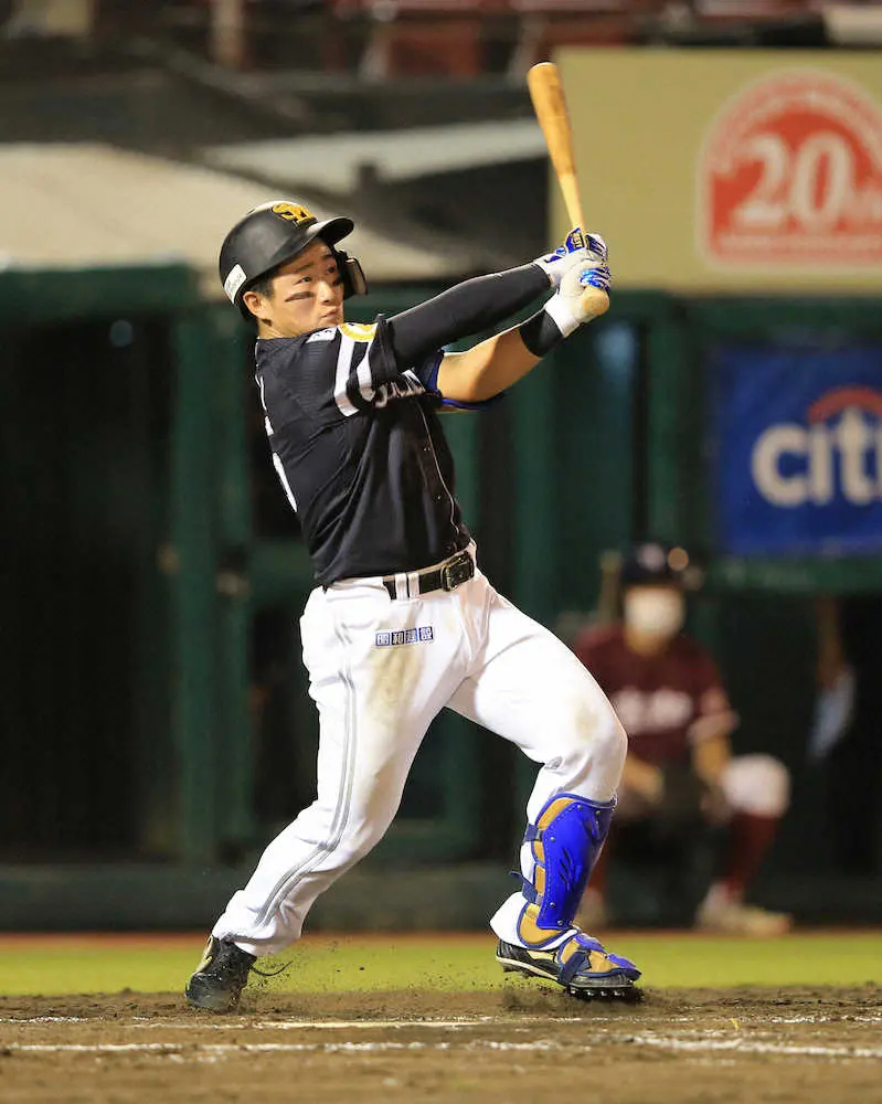 <楽・ソ>4回、野村大が二塁打を放つ(撮影・篠原岳夫)