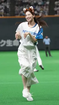 女優・真飛聖が無念の“ゴロ始球式”「恥ずかしいよー」