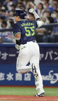 キブレハンの左前適時打でこの回先制のホームを踏んだ村上は続く3回、目の前を打つ3番・山田の20号ソロで3―0となって迎えた1死走者なしの場面で第2打席へ。ここでも四球を選んで44年ぶりに球団記録を更新する新記録達成となった。3―1で迎えた5回は無死一、二塁のチャンスで第3打席へ。カウント2―2からの6球目が相手先発右腕・京山の暴投となって無死二、三塁となると、続く7球目は敬遠気味に外され、3打席連続の四球出塁となった。