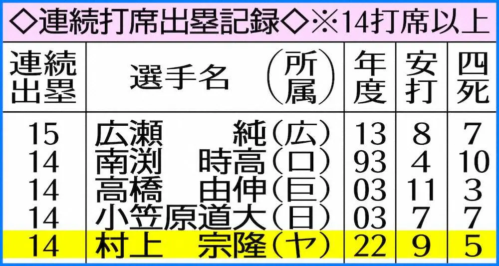 <D・ヤ>7回、勝ち越しソロを放ち迎えられる村上(中央)(撮影・会津 智海) Photo by スポニチ ヤクルト・村上 止まらない50号王手&14打席連続出塁「よく考えて打席に… ギャラリーで見る この記事のフォト 2022年08月29日の画像一覧 もっと見る 2022年08月29日の画像をもっと見る