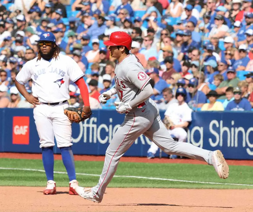 試合は大谷の一撃を含め、4本塁打を放ったエンゼルスが8―3で快勝。敵地でブルージェイズに3連勝した。大谷は4打数3安打2打点、1四球で打率は・265。3安打を放ったのも10試合ぶりとなった。