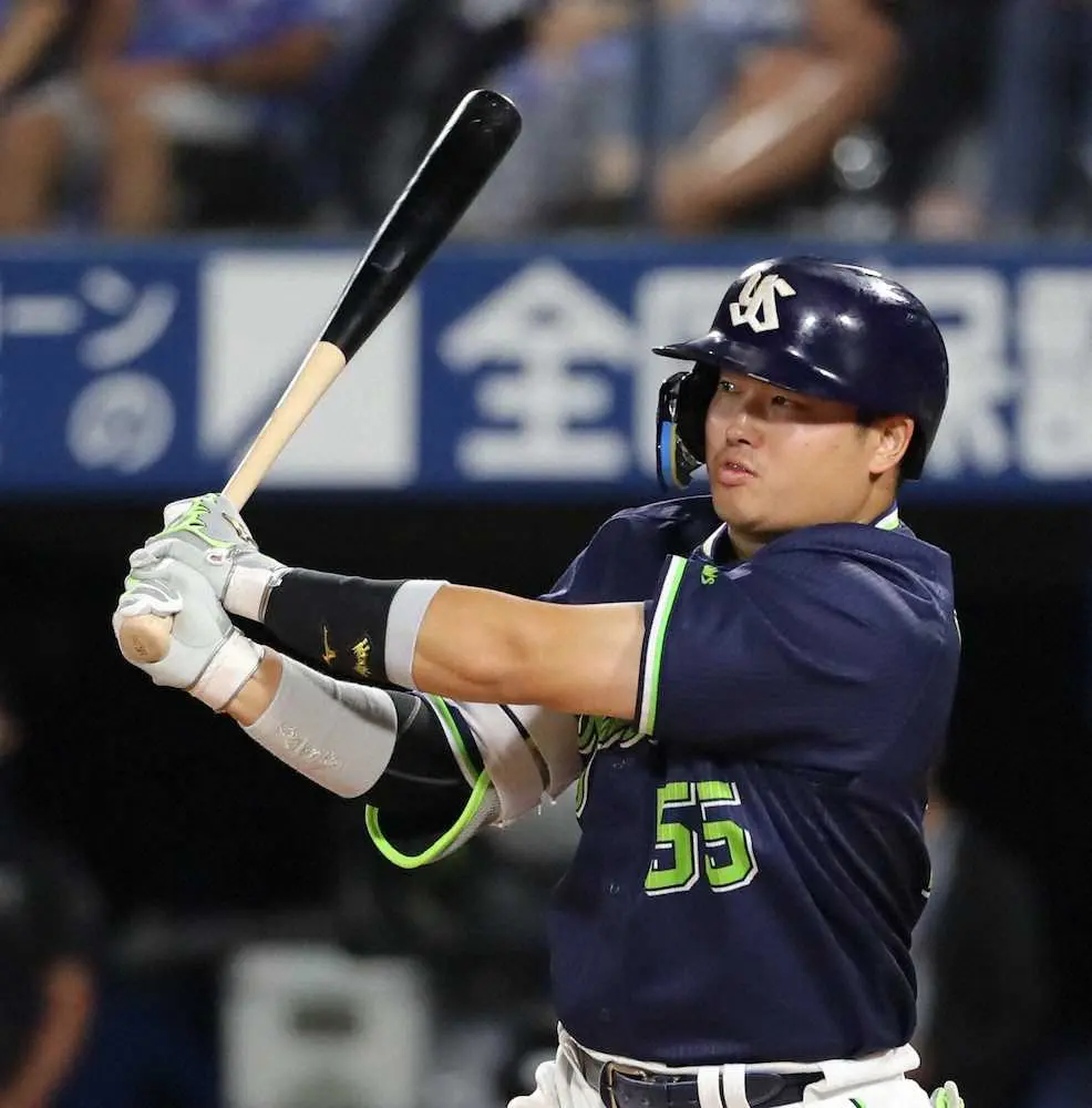 3打席連続四球で迎えた4打席目だった。助っ人左腕とは過去32打席でわずか3安打の打率・103。長打は一本もない天敵だった。「力負けしないように」と振り切った。02年の松井秀喜以来となる日本選手のシーズン50本塁打に王手をかける一発。同じ背番号55をつけ、本塁打を求められる宿命の中、元祖55番に肩を並べるところまできた。