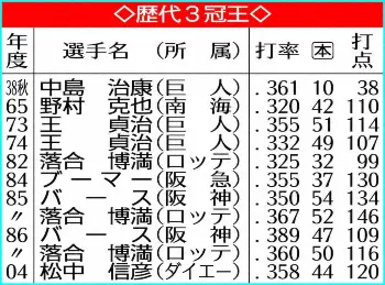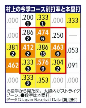 村上の今季コース別打率と本塁打 Photo by スポニチ 平成唯一の3冠王・松中氏 ヤクルト・村上の令和初偉業に太鼓判 ポイント… ギャラリーで見る この記事のフォト 2022年08月30日の画像一覧 もっと見る 2022年08月30日の画像をもっと見る