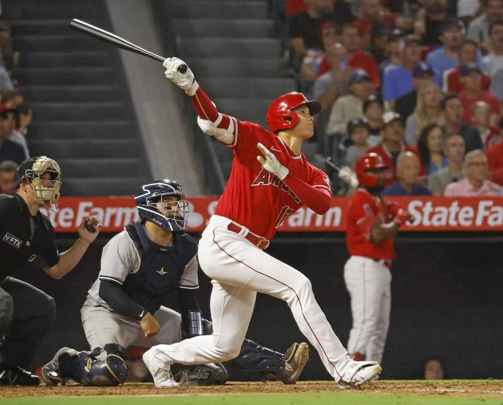 【画像・写真】大谷翔平 2戦連発29号!日本人初2年連続30号王手 右手一本勝ち越し2ラン ヤ軍・ジャッジの前で