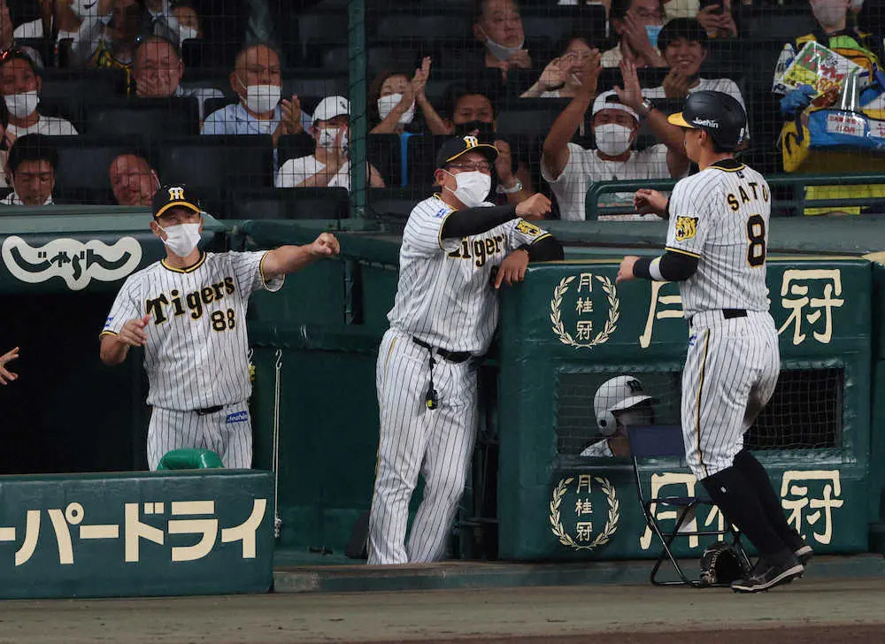 カード2連勝で4位・広島に3・5ゲーム差をつけた阪神・矢野監督は4番・佐藤輝の走塁とつなぎの打撃を称えた。1点劣勢の5回2死で右前打を放つと、続く大山の2球目に二盗を決めて今季10個目の盗塁を記録。大山の中前適時打で同点のホームを踏んだ。
