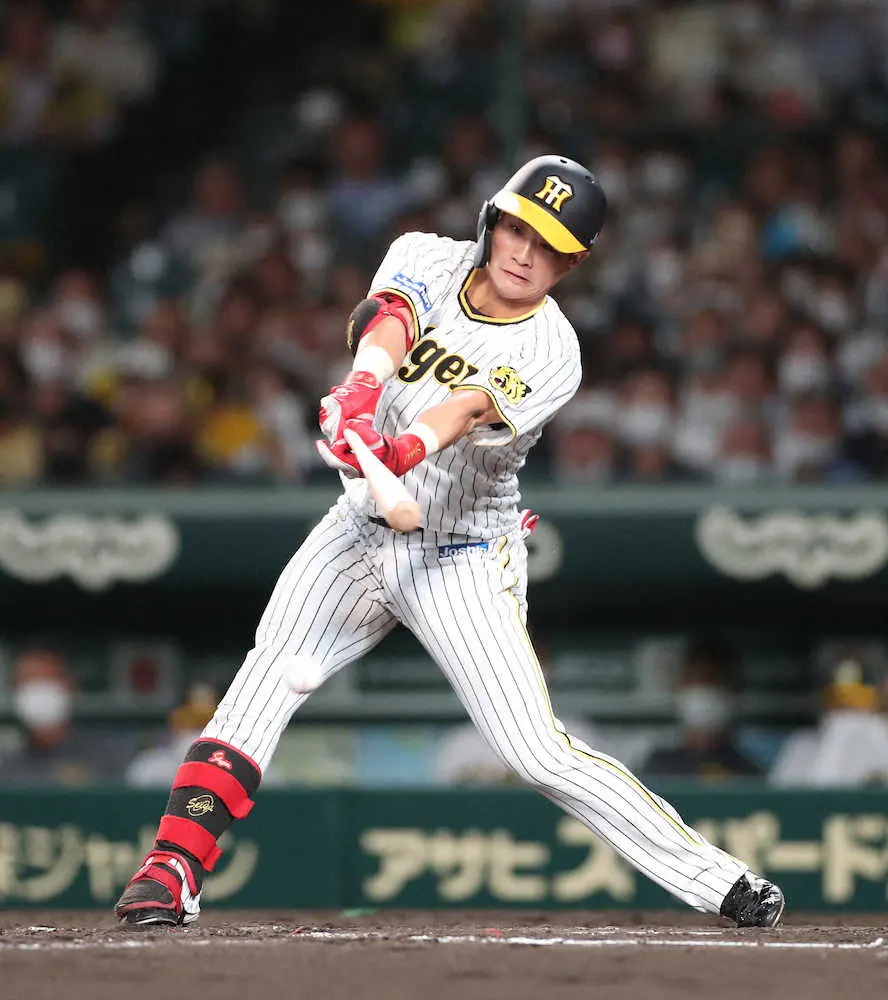 5回表に逆転を許したその裏は2死無走者から追いついた。佐藤輝がフルカウントから右前打。さらに二盗を決めた。
