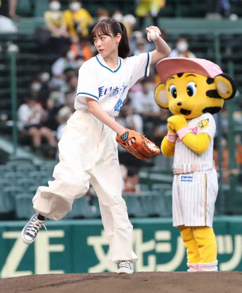 【画像・写真】朝ドラヒロインの福原遥が伝統の一戦でファーストピッチ「すごく感動して本当にうれしかった」