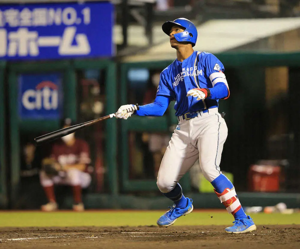 日本ハム・万波が14号ソロを放ち、本塁打チーム単独トップに躍り出た。2日の楽天戦で同点の5回に相手先発・岸の139キロ直球を捉え、左翼席へ運ぶ勝ち越しのアーチ。「やっとバットに当たりました」と“自虐的”にコメントした。
