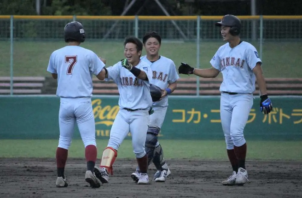近大が逆転サヨナラ勝ちでタイブレークを制し、勝ち点1を獲得した。「2番遊撃」でフル出場した坂下翔馬(3年=智弁学園)が10回に決勝打。連覇へ向けて連勝発進した。