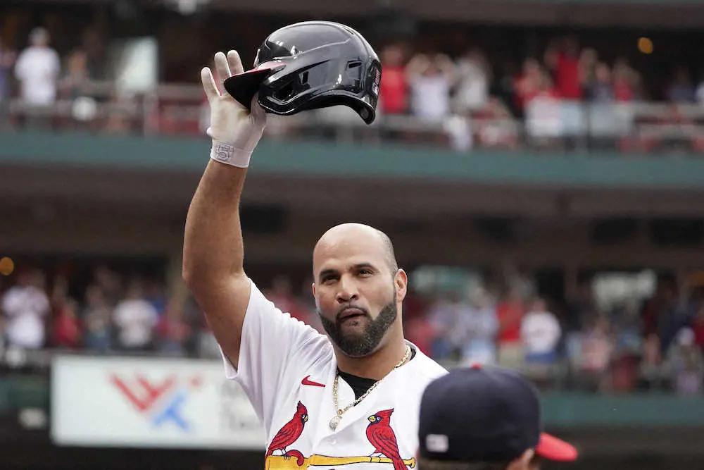 今季限りでの引退を表明しているカージナルスのアルバート・プホルス(42)が4日、地元セントルイス(ミズーリ州)で行われたカブス戦の8回に代打として登場。カブス2番手の新人左腕、ブランドン・ヒューズ(26)から左越えに16号2ランを放ち、通算695号をマーク。アレックス・ロドリゲス(元ヤンキースほか)の歴代4位の通算本塁打記録(696)にあと「1」と迫った。