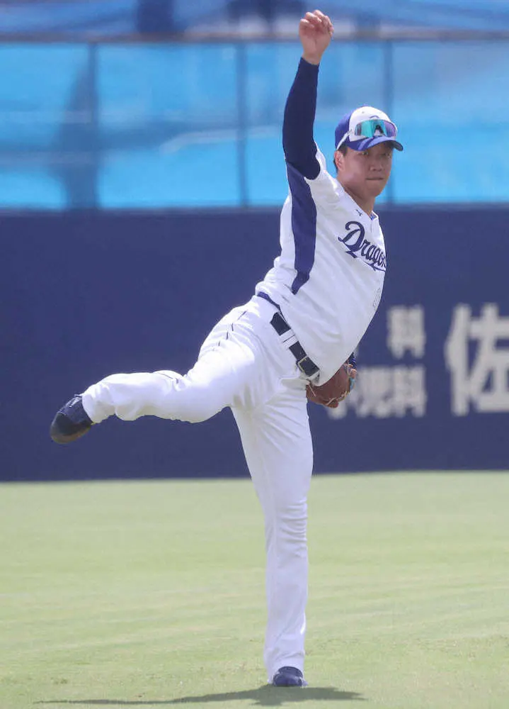 6日の広島戦で先発する中日・柳がナゴヤ球場で調整し、自身初の2年連続2桁勝利に意欲を見せた。