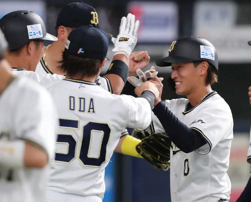 <オ・ソ>ソフトバンクを破り首位に浮上した山本(中央)らオリックスナインは笑顔でタッチをかわす(撮影・大森 寛明) Photo by スポニチ オリ単独首位にネット歓喜「連覇が見えてきたああああ!!」「このまま優勝… ギャラリーで見る この記事のフォト 2022年09月10日の画像一覧 もっと見る 2022年09月10日の画像をもっと見る