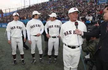 「本当に素晴らしい仲間だよ。指導力のなさを学生達が研究して、分析して、皆が考えて勝利に向かう。素晴らしいと思いましたよ。負けて、坊主にもなった。感謝の気持ちを両親、家族と野球が神宮の満員の中で出来た。その仲間は最高だ(^_^) 私だけが昭和野郎で迷惑かけたな」