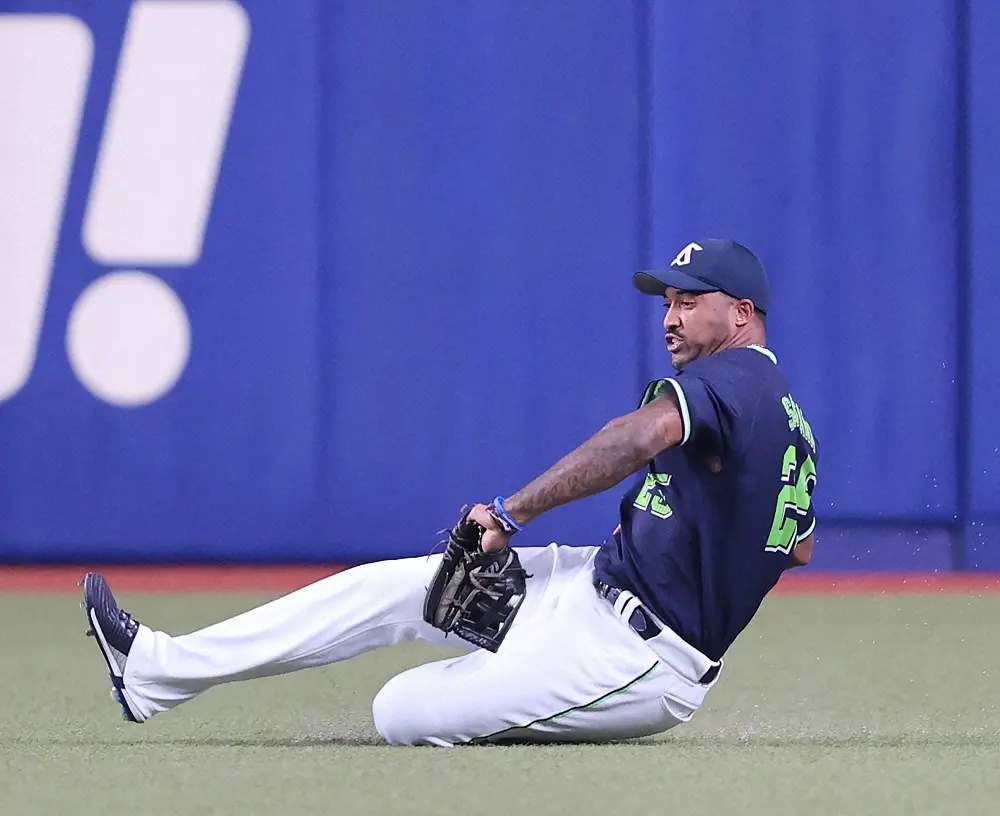DeNA―ヤクルト戦で珍プレー スライディング捕球を試みたサンタナのグラブで打球が大きくはねる