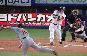 <ヤ・巨>9回、55号となるソロを放った村上(撮影・村上 大輔)