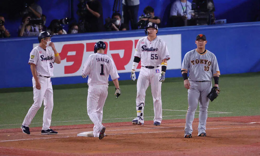 <ヤ・巨>5回、3ランを放ちナインに迎えられる中田(中央)(撮影・光山 貴大) Photo by スポニチ 巨人・中田翔 栗山監督の前で3ラン「“恩返しをしていこうな”という言葉を… ギャラリーで見る この記事のフォト 2022年09月13日の画像一覧 もっと見る 2022年09月13日の画像をもっと見る