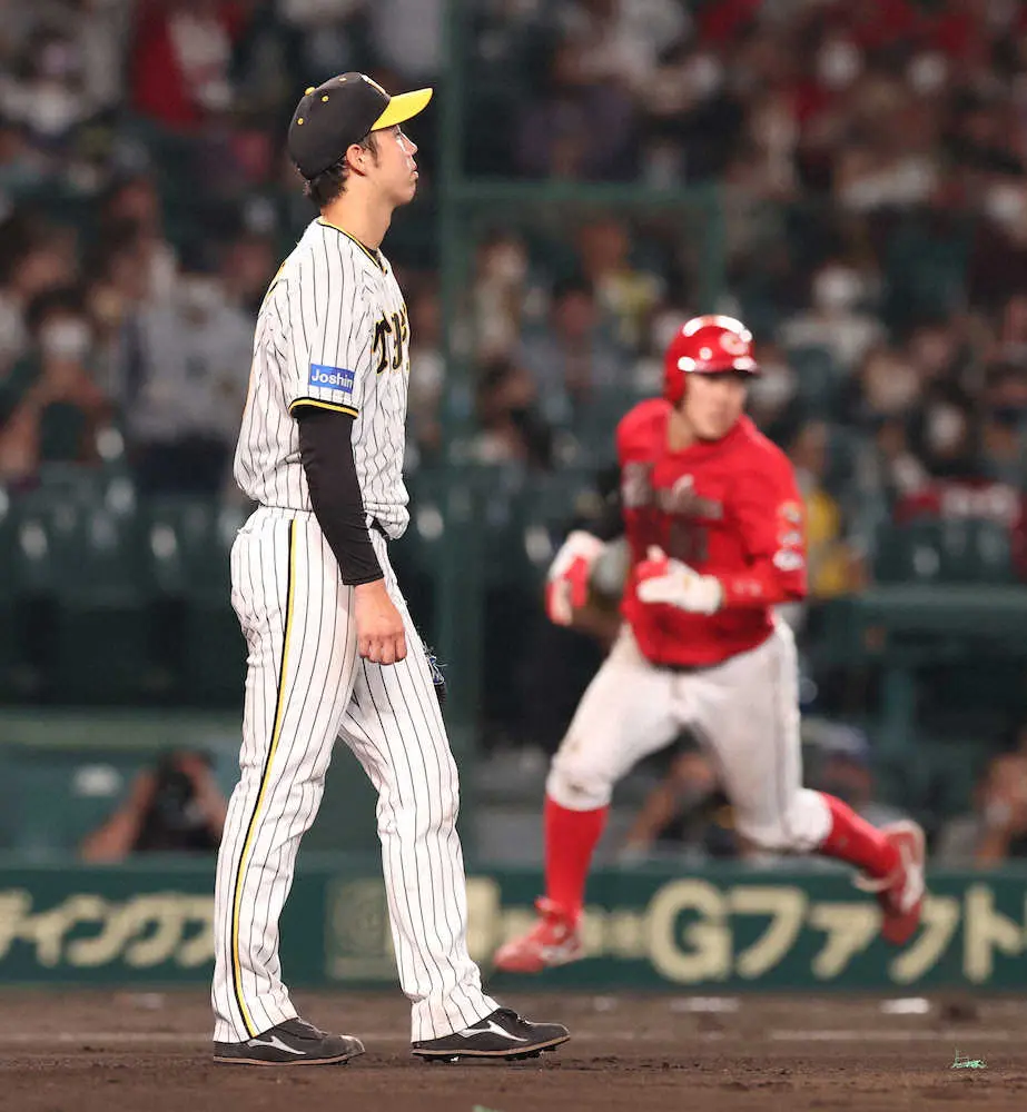 0―0で迎えたこの回、直前の1死一、三塁で二ゴロを打たせたが、4―6―3の転送で一塁送球がそれた。打球が緩く一塁のタイミングはセーフ。併殺は無理だったが、遊撃手・中野拓夢の悪送球(失策)で打者走者が二塁に進んだ。