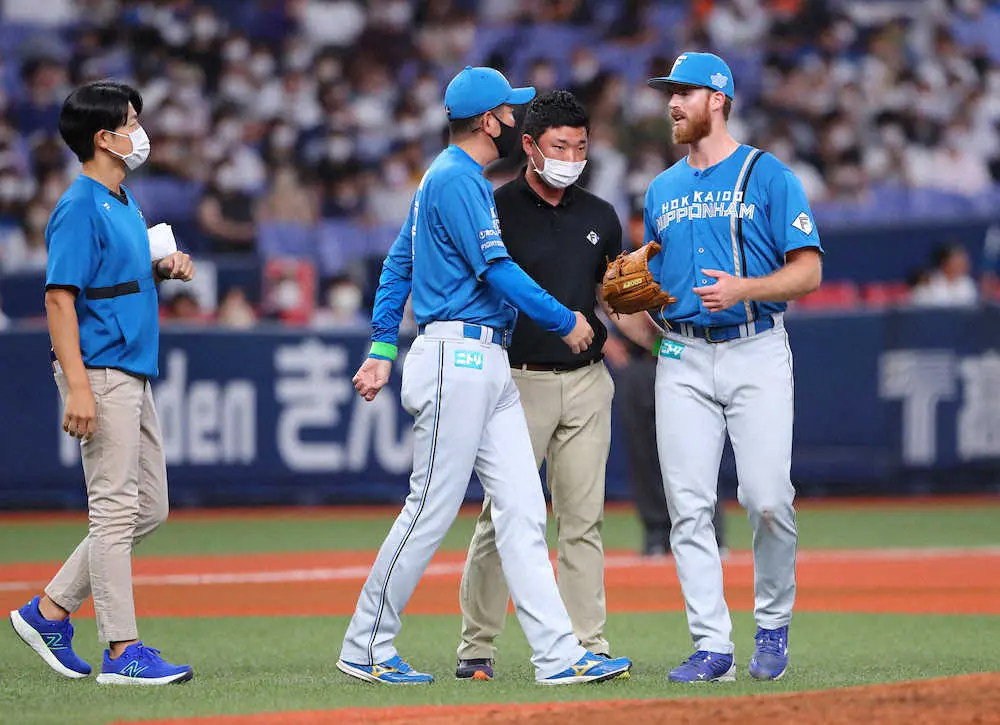 日本ハム・メネズが6回途中に緊急降板 2度目の先発、左足に異変か