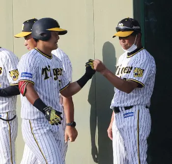 <ウエスタン 神・ソ>9回1死、右中間にソロ本塁打を放った前川(左)を迎える平田2軍監督(撮影・坂田 高浩) Photo by スポニチ 阪神・前川 ウエスタン復帰戦で即2号本塁打 12日の練習試合で3カ月ぶり… ギャラリーで見る この記事のフォト 2022年09月16日の画像一覧 もっと見る 2022年09月16日の画像をもっと見る