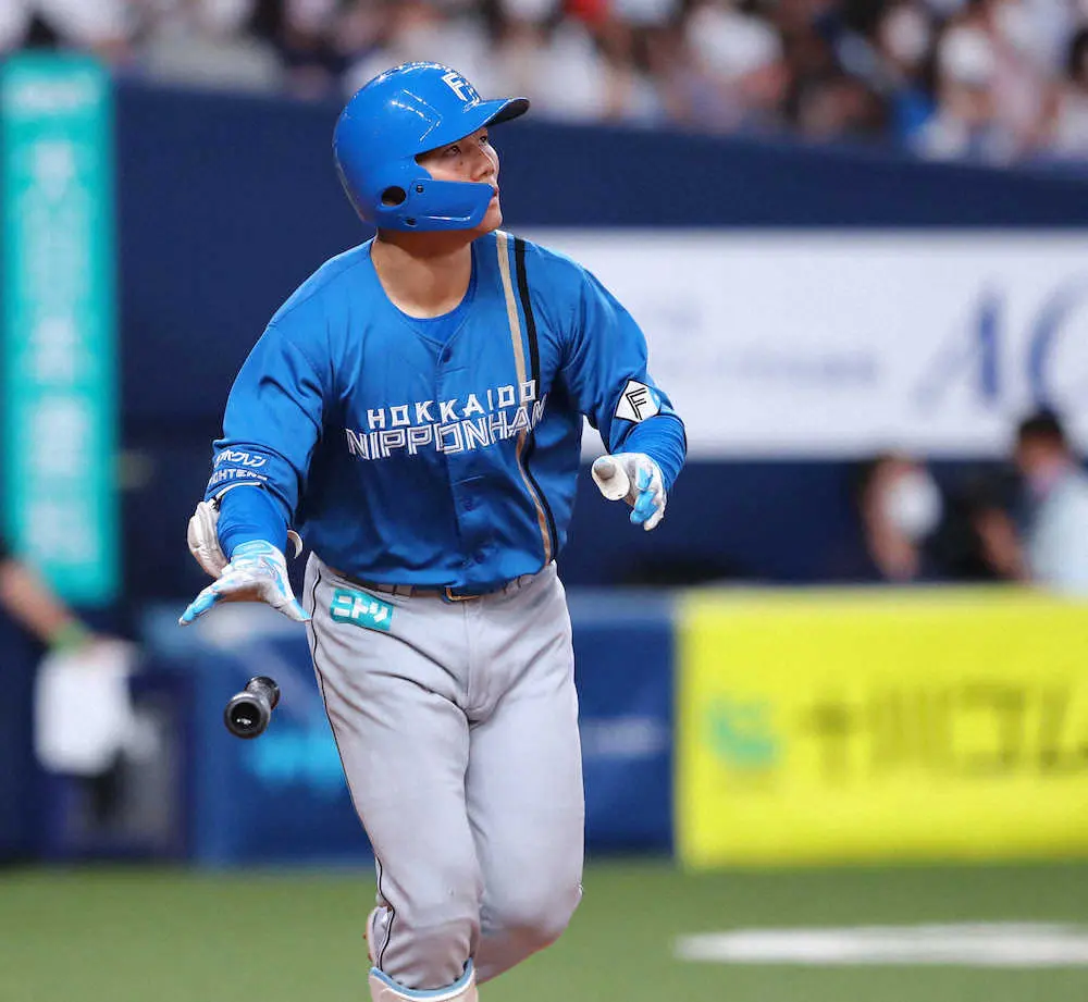 1点を追う5回に松本剛の犠飛で同点に追いつき、なおも2死一、二塁。相手2番手・村西の高めに浮いた142キロ直球を右翼席に運んだ。2打席連発を放った13日のロッテ戦以来3試合ぶりのアーチ。直近4戦3発と状態を上げてきた主砲に、新庄監督も「あれは向こうのサインミス。高めに外してセカンドスロー。それを見逃さなかった」と、及第点を与えるも「なんか起きますよね…。彼の場合、なんか起きて活躍する」と、苦笑いだった。