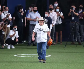 <オ・ソ>始球式で投球し得意の決めポーズをするスタン・ハンセンさん(撮影・後藤 正志) Photo by スポニチ “不沈艦”スタン・ハンセン氏 オリックス戦始球式「大暴投になっちゃった… ギャラリーで見る この記事のフォト 2022年09月18日の画像一覧 もっと見る 2022年09月18日の画像をもっと見る