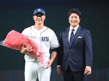 西武・内海に高橋由伸氏と堀内恒夫氏から花束 高橋氏「哲、また一緒にやれるかな」