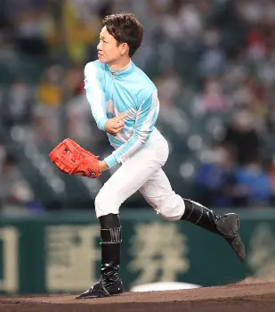 阪神戦でJRA松山騎手が始球式「勝利してほしい」 牝馬3冠ジョッキーがCS争いの猛虎に勝ち運を
