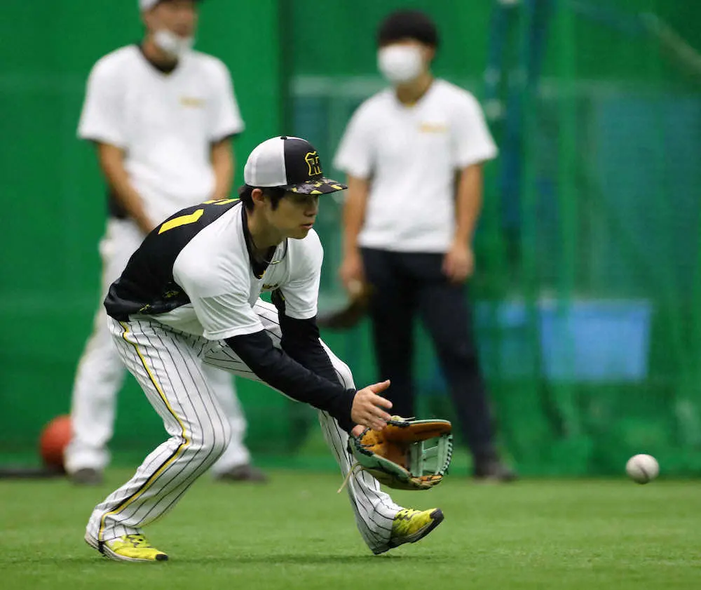 練習中には久慈、藤本両守備コーチと話し合い、送球ミスの原因は足の運びにあったと究明。ステップ幅、リズムなどを確かめながらノックを受けた。「守備を第一に考えて、そこからリズムを持って来られるようにしっかりやりたい」。16日には矢野監督からキーマンに指名された。走攻守全てで中心を担う「1番・遊撃」が力を発揮すれば、自然と勝利に近づく。