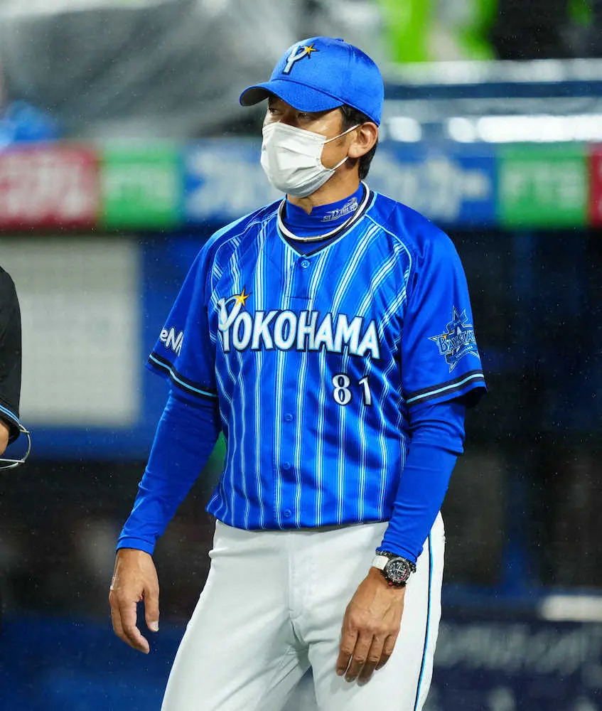 <ヤ・D>8回、選手交代を告げベンチへ戻る三浦監督(撮影・島崎忠彦)