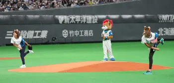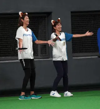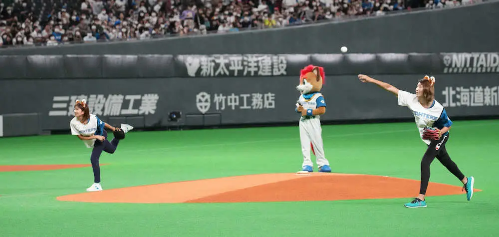 潮田玲子氏、狩野舞子氏が日本ハム―楽天でファーストピッチセレモニー きつねダンスも披露