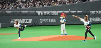 バドミントン元日本代表・潮田玲子氏、バレーボール元日本代表・狩野舞子氏が25日、札幌ドームで行われた日本ハム―楽天戦でファーストピッチセレモニーを務めた。