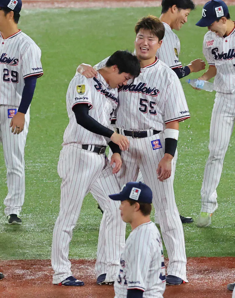<ヤ・D>涙の山田(左)と抱き合う村上(撮影・光山 貴大) Photo by スポニチ ヤクルト連覇達成!主将・山田の大号泣がネットで話題「村上の胸で泣くとか… ギャラリーで見る この記事のフォト 2022年09月25日の画像一覧 もっと見る 2022年09月25日の画像をもっと見る