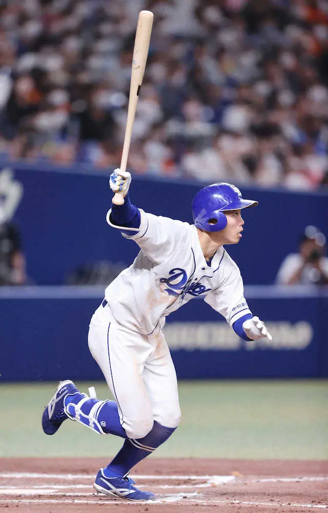 <中・巨>6回、岡林は猛打賞となる三塁打を放つ(撮影・椎名 航)