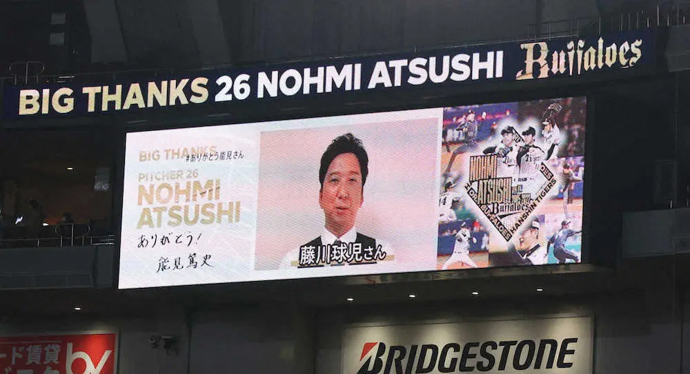 オリックスの能見篤史投手(43)が、30日のロッテ戦で引退登板を果たした。試合後には引退セレモニーが行われ、藤川球児氏、中日・福留とともに、新井貴浩氏が動画メッセージを寄せた。また、セレモニーには鳥谷敬氏も登場し、能見に花束を贈呈した。
