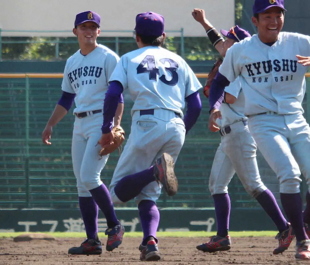 九国大は1―1の3回2死一、三塁に井野紘希(3年)が右越えに勝ち越しの3ラン。その後も紺屋南翔(4年)が4回に中前適時打、6回に右犠飛、8回は福永健介(4年)が右ソロ本塁打するなど計15安打で8得点。投げては大黒柱の右腕、田村晃雅(3年)が2安打1失点の完投で今季5勝目を挙げ、リーグトップに並んだ。