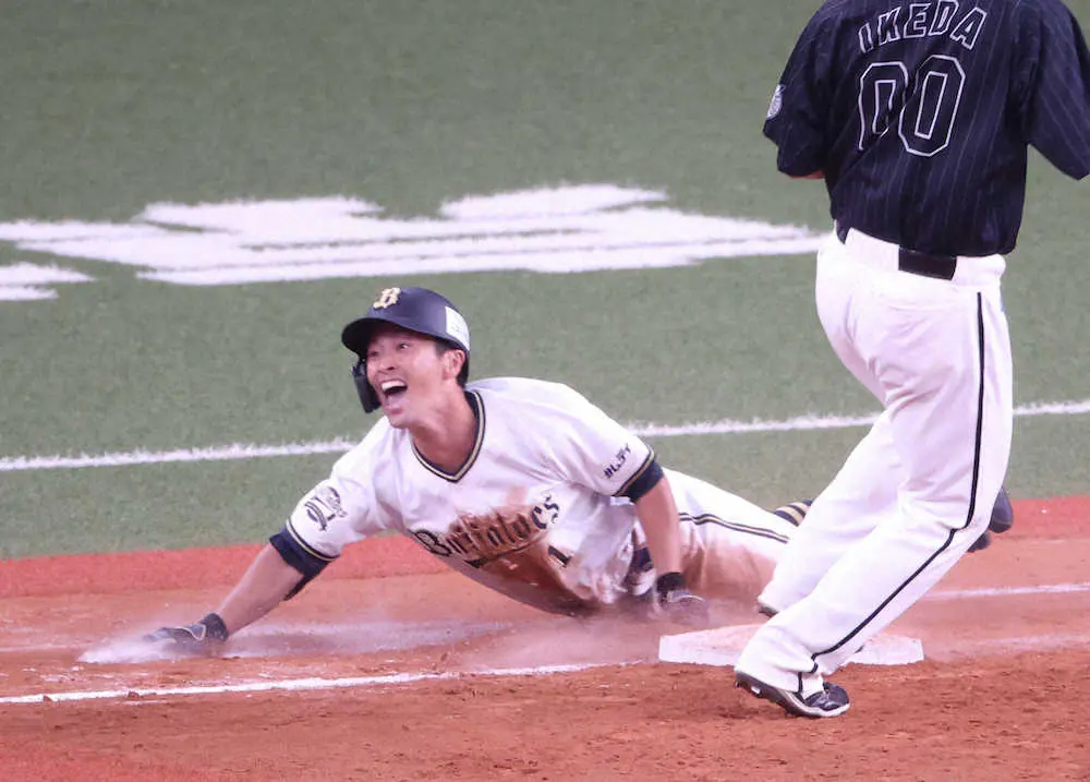 3―2の9回に守護神・平野佳が2死走者なしから同点に追いつかれ、ないはずだった裏の攻撃。先頭の紅林が左中間を破る二塁打を放ったが、2死三塁と変わって漂う延長戦の雰囲気を、会心のひと振り…ではなく、3ボールから意表を突くアイデアで主役の一人になった。