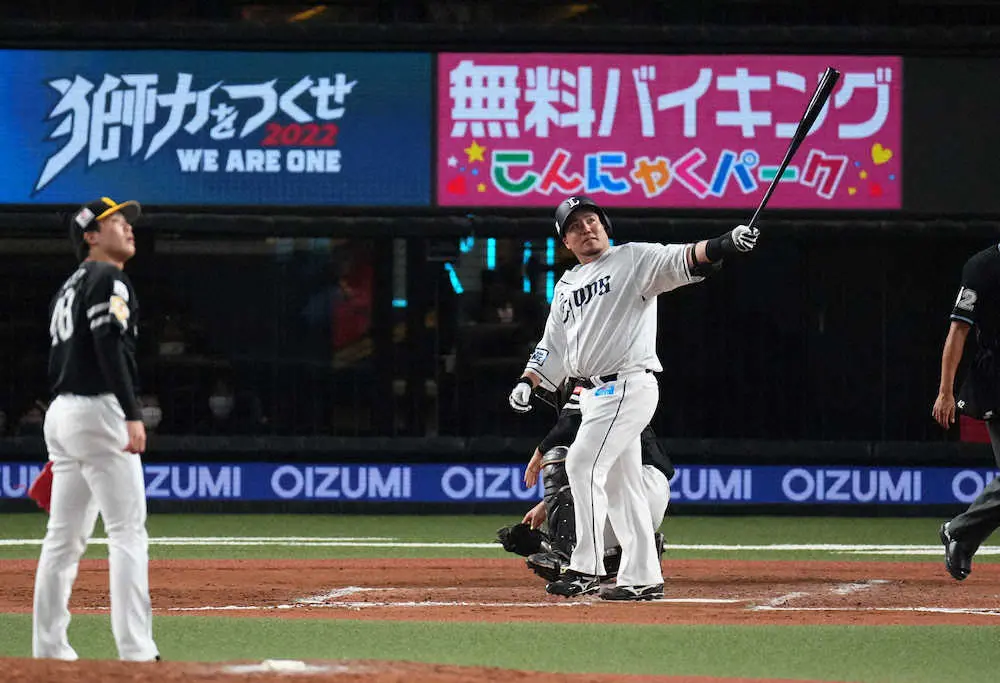 1─1で迎えた11回2死一塁。ソフトバンクの5番手・藤井のカント2ボール1ストライクからのフォークボールを左越えへ運ぶ劇的な41号2ラン。ヒーローインタビューで「初めてのサヨナラホームランなので、うれしいです。サヨナラヒットはありますが、(サヨナラ)ホームランは打ったことがなかったので、本当にうれしいです」と笑顔で語った。