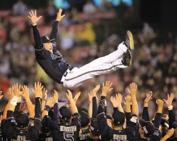 オリックス クラッカーでの“珍”祝勝会 中嶋監督「オーナーをもう1回胴上げしましょう」